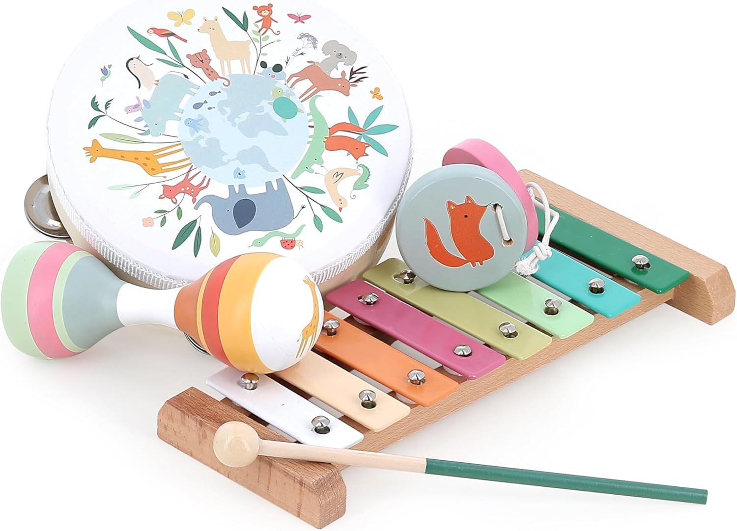Värvikas muusikakomplekt, mis tutvustab lapsele helisid ja rütmi mängulisel viisil. Sobib ühismänguks ja esimeseks muusikakogemuseks.